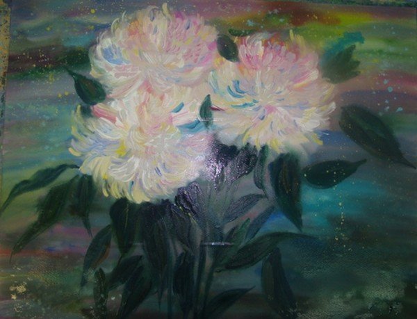 Очень красивые белые пионы. Как будто здесь дело летом, в июне месяце, после дождя.