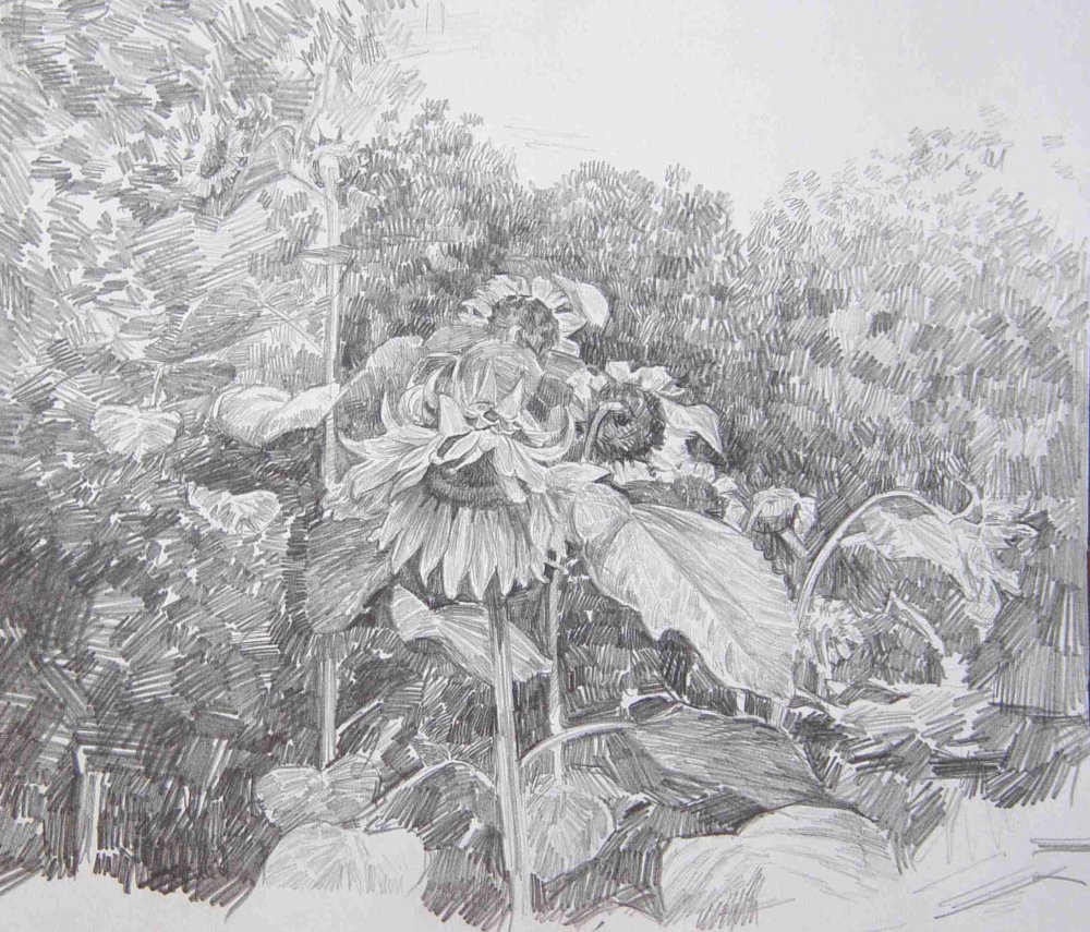 Кожин С.Л.Подсолнухи.2004.Бумага,графитный карадаш.22х19см