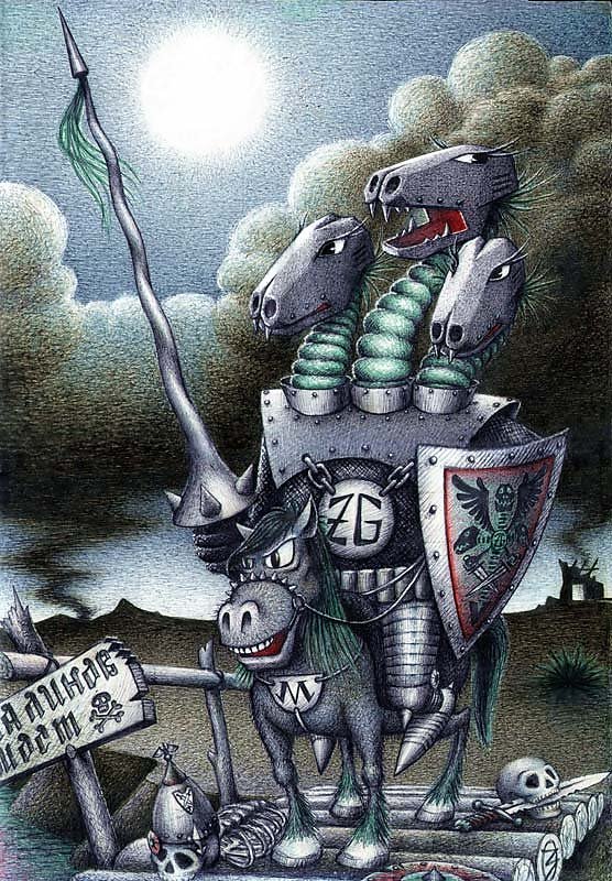 Мне кажется, - змий здесь - нормальный, достойный пиплмэн (ну и что с того, что три башки?); а вот мерин под ним - ох злобный, ох дураков не любит!!!