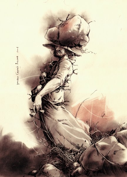 бумага, тушь, перо, соус