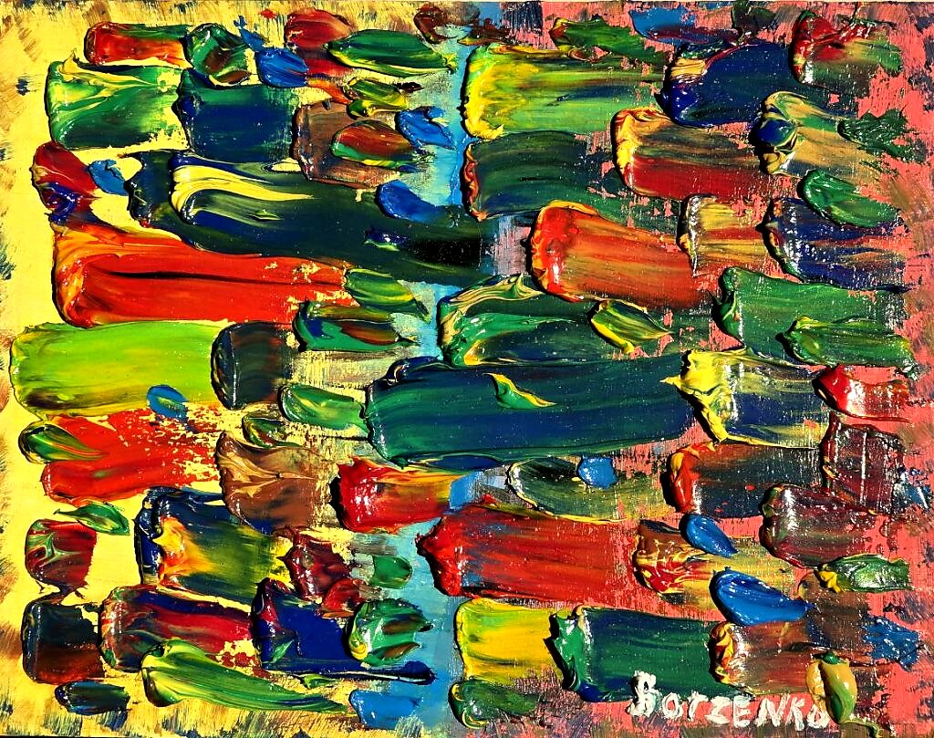 Искреннее «СПАСИБО» всем, кто лайкает мои картины, но хочется, чтобы вы понимали: я их начал «писать» стеба ради! Это мой некий креативный протест против современного искусства, где зачастую мы сталкиваемся с удивительным явлением: чем больший ИДИОТИЗМ видим на картинах, тем больше хвалебных отзывов они вызывает, и тем более заоблачными являются выставленные на их ценники.