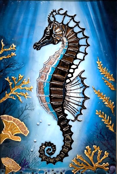 Акрил, текстурная паста, зеркала, поталь, эпоксидная смола
