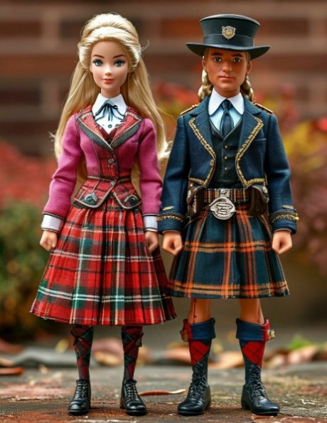 Изобразительное искусство / НЕЙРОСЕТЬ (изображения, сгенерированные нейросетью) / Барби и Кен, шотландцы