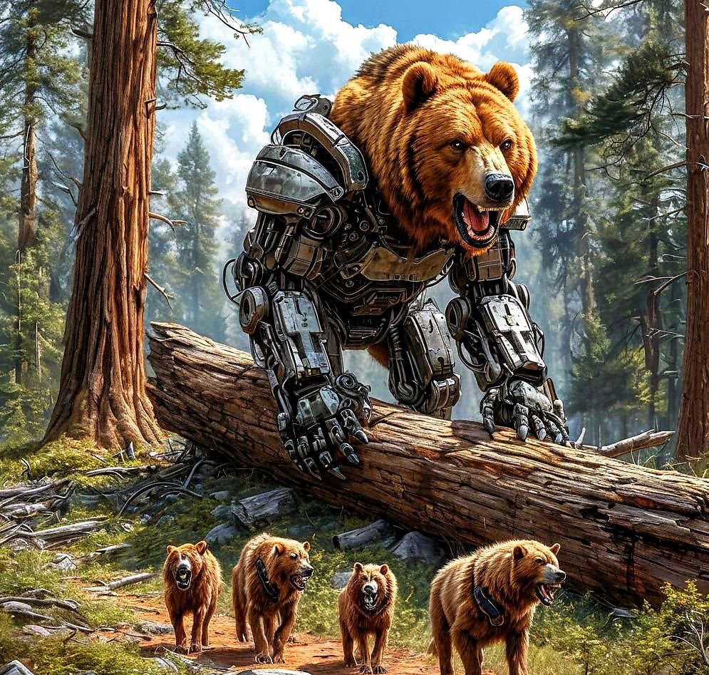 Прогресс! И медведь в скафандр влез. Облачил в стальные латы Все лохматые он лапы. Охраняет Мишка лес Он в скафандре чистый бес . Как увидите Мишутку Испугает не на шутку. Громко Мишка зарычит Сразу сделаешь кульбит. Развернешься убежишь. И, как заяц задрожжишь. Ну,а волки тут как тут За тобою побегут. А поймают, берегись Вот и кончилася жизть |