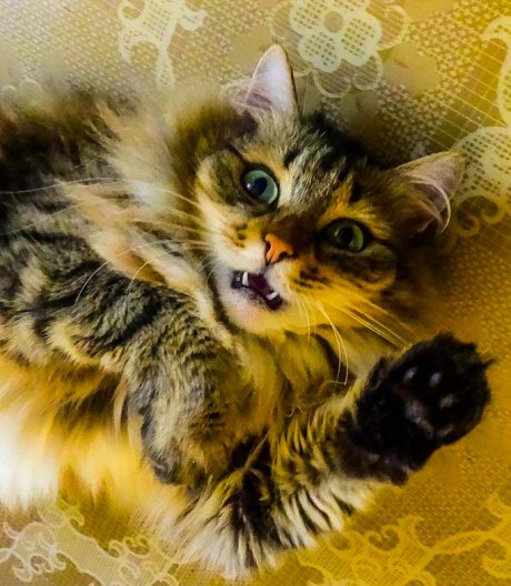 До чего же выразительный котЕйка!? Гамма эмоций, больше конечно негативных (не критически), но как момент жизни стОяще, запечатлелось.