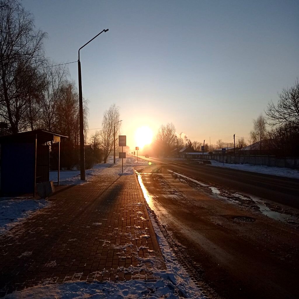 Утро выходного дня? В буднее утро на остановке должна бы быть толпа народу.
