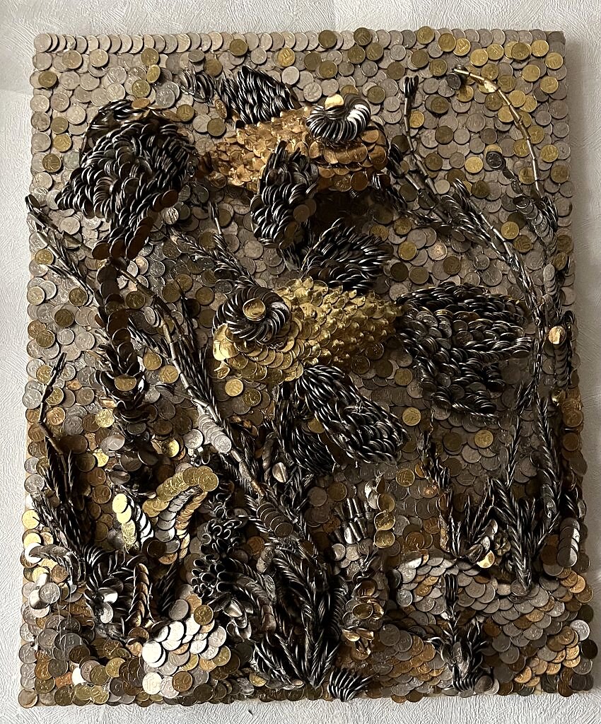 Сделана объемный пиксельной мозаикой монетами 3D ПММ
