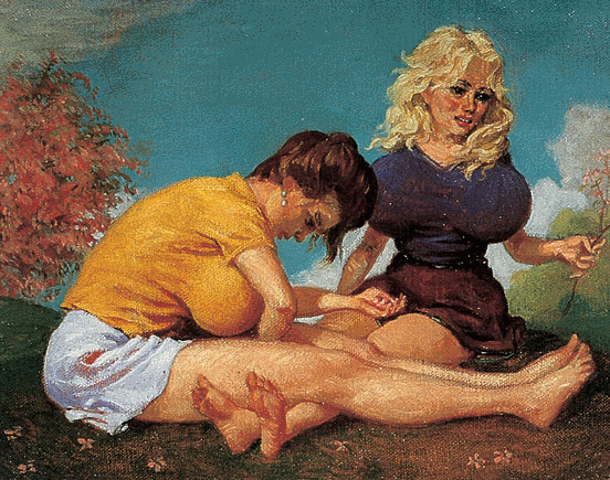 Голых у Дюрера слизал . Трактовку , но отретушировал качественно . Не мог обидеть женскую пластику .